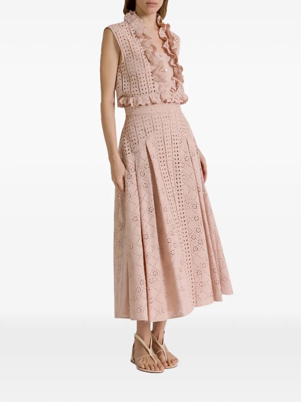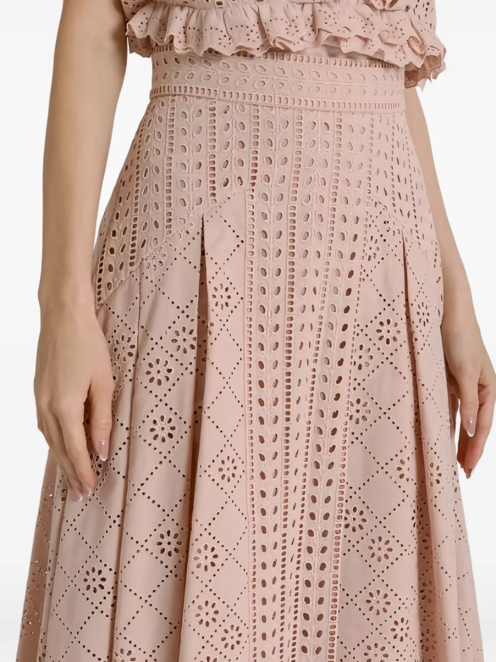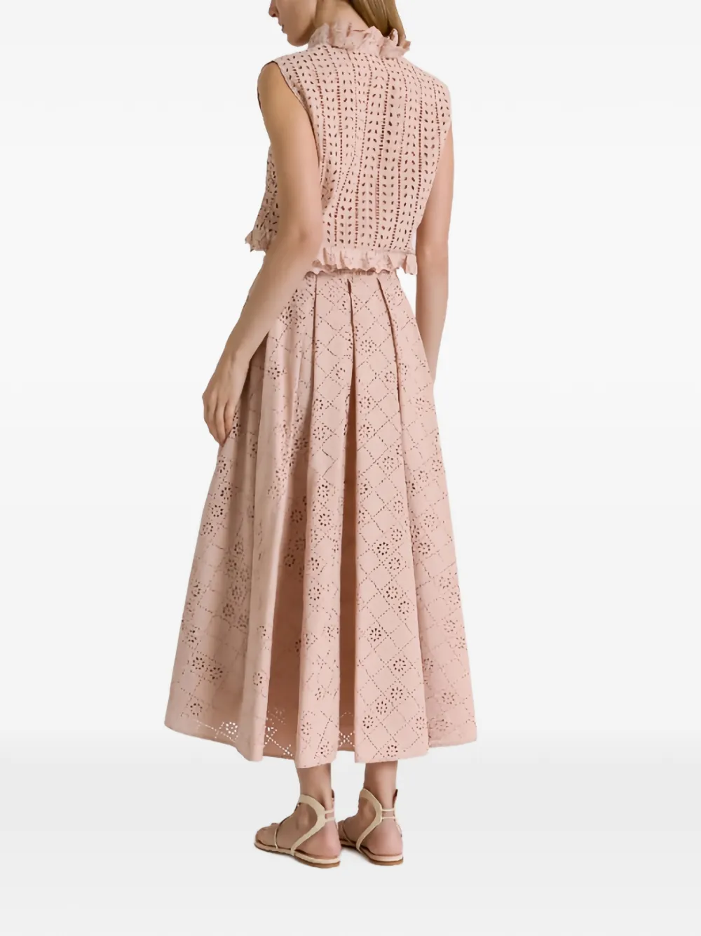 New Season Alberta Ferretti pleated skirt Made in Italy Highlights beige openwork design pleated A-line fitted waist Composition Cotton 63%, Polyester 37% Washing instructions Machine Wash Product IDs FARFETCH ID: 31925686 Brand style ID: AEF261U01101622