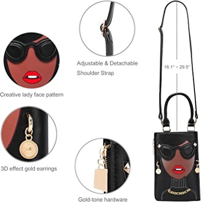 CATMICOO 3D Lady Face Pattern Novelty Purses for Women with Detachable Shoulder Strap