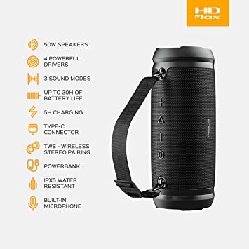 LONG-LASTING BATTERY AND POWER BANK - The HD-Max is a portable bluetooth speaker with a power bank with pass-through charging and a USB Type-C connector. Stay connected with 20 hours of playtime and fast charging.