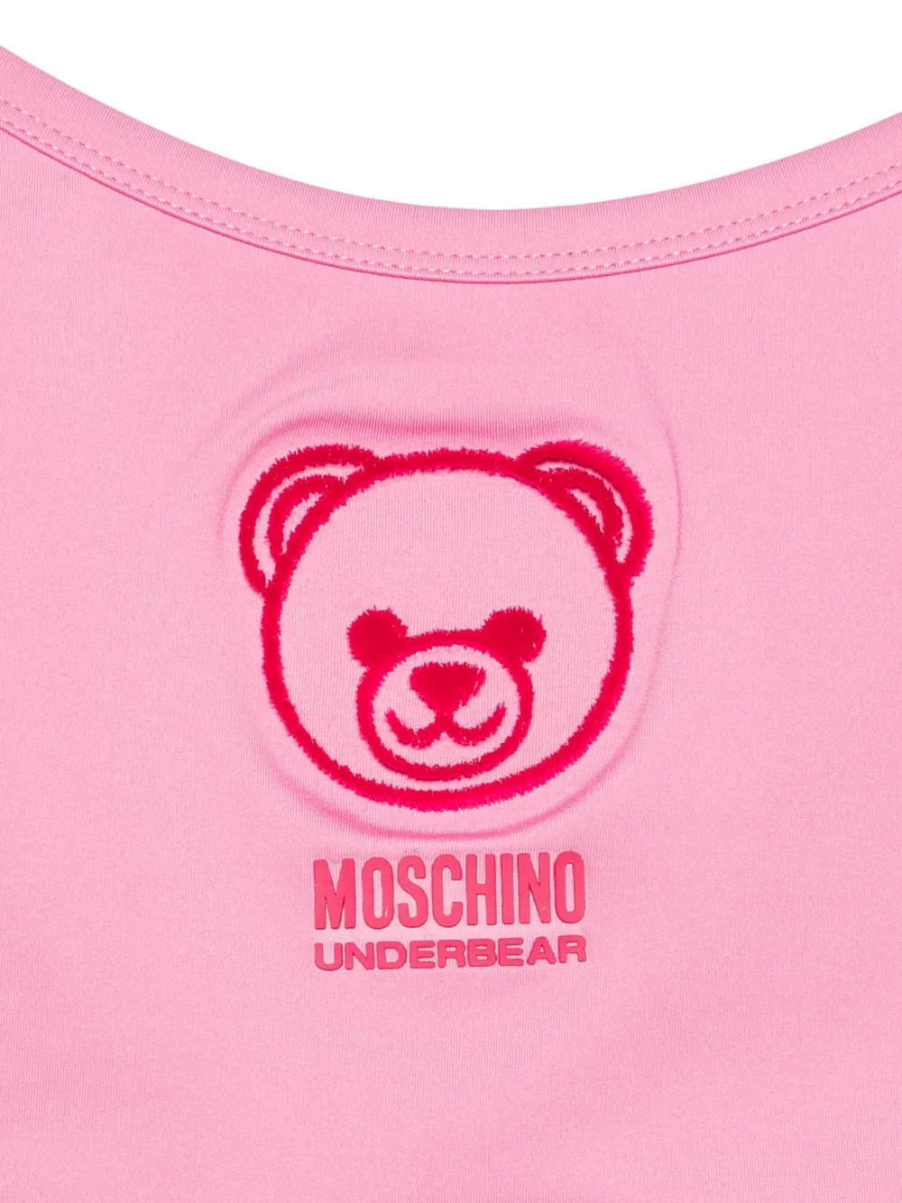 Final Sale Moschino Teddy Bear-embroidered bra Imported Highlights rose pink adjustable straps cut-out detail Composition Polyester 85%, Elastane 15% Washing instructions Read Manufacturer Guidelines Product IDs FARFETCH ID: 30905407 Brand style ID: A08034603