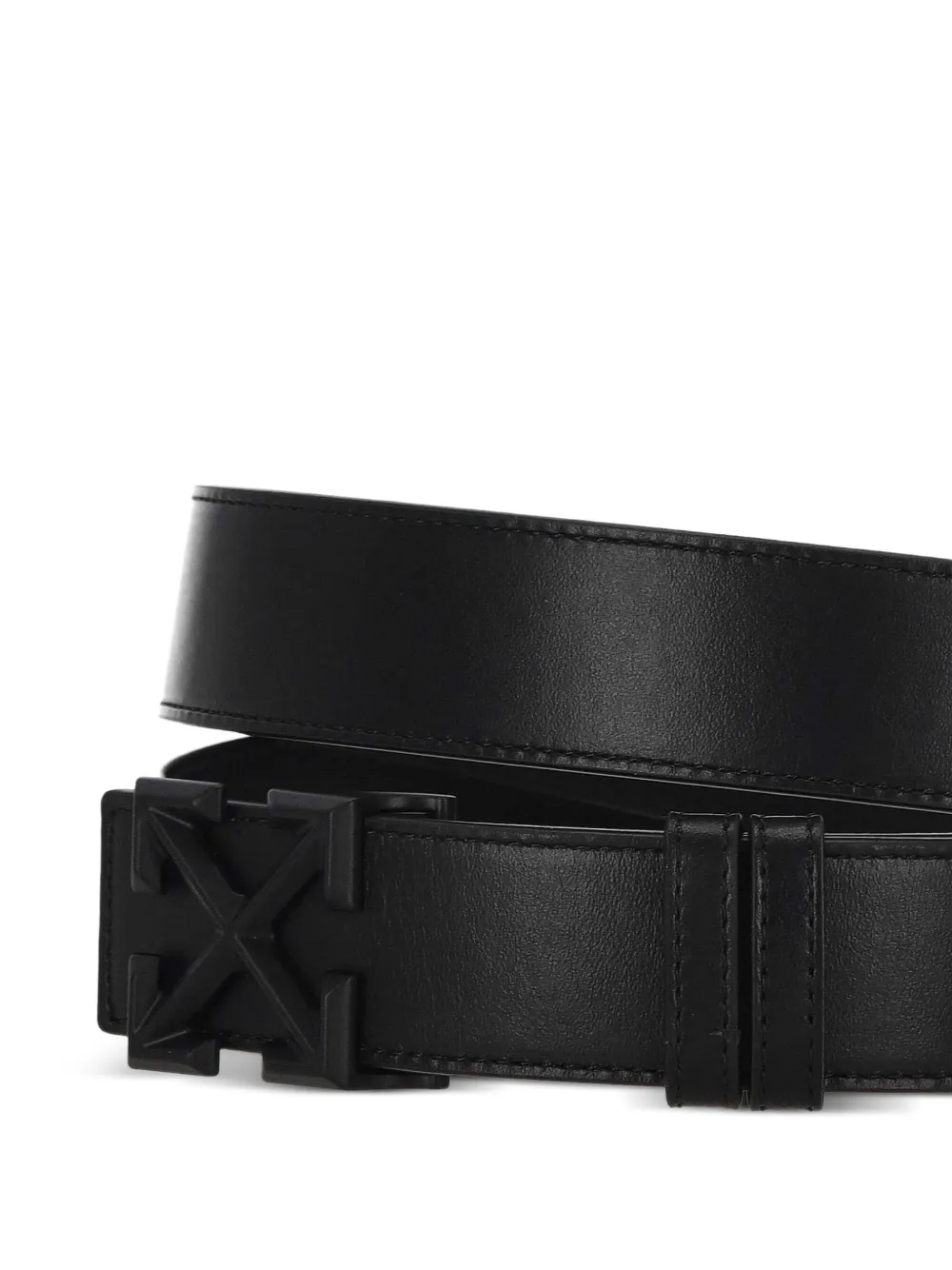 Off-White arrow buckle leather belt Made in Italy Highlights black leather arrow-buckle tonal-stitching adjustable length keeper-loop signature Arrows motif Composition Calf Leather 100% Product IDs FARFETCH ID: 32622330 Brand style ID: OMRB14GF25LEA0021065