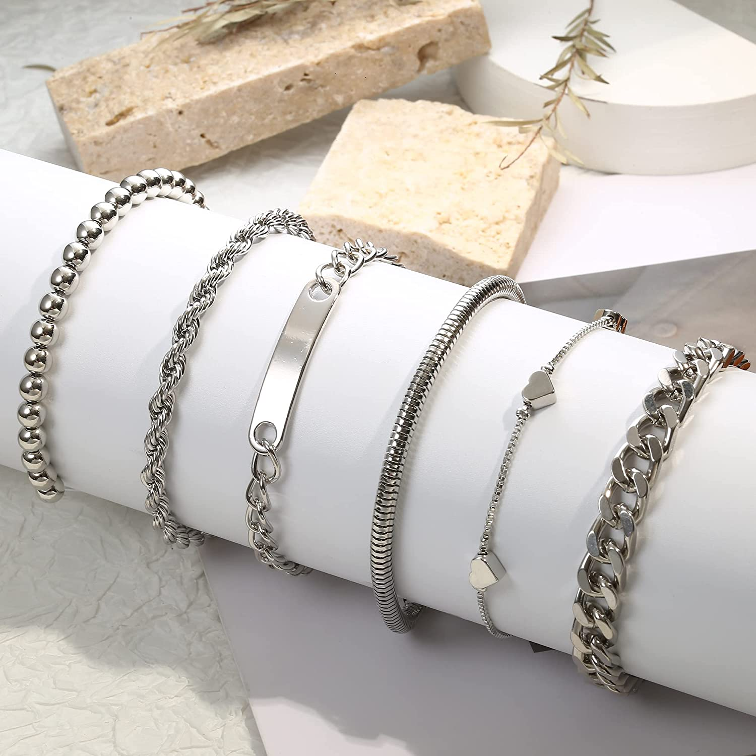 • ★Adjustable Size-Bracelets Size Is About 6.69"+2.75"Extension Chain; The Size Is Suitable For Most Women'S Wrists. If You Are Looking For Minimalist And High-Quality Jewelry Set, This Bracelet Set Is Essential For All Ages of People, It Will Make You Elegant And Sexy Every Moment.
