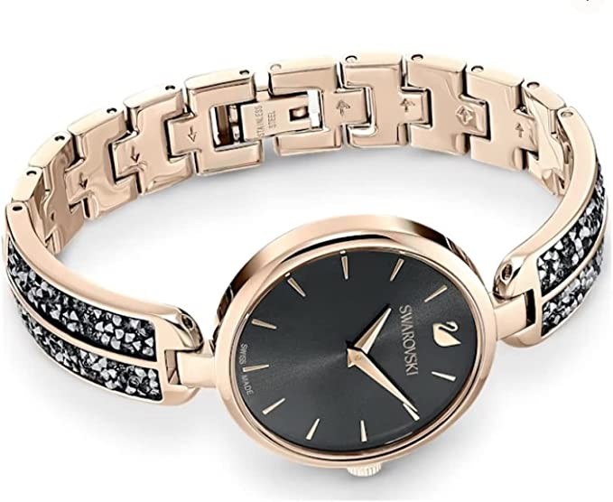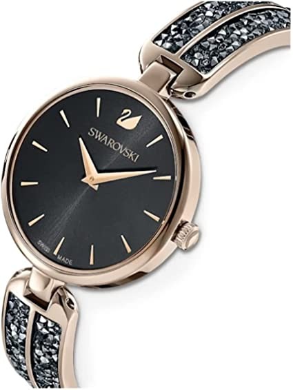 Swarovski 5519315 Black Dial Grey Crystal Champagne Gold Tone Finish Women's Metal Bracelet Watch